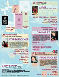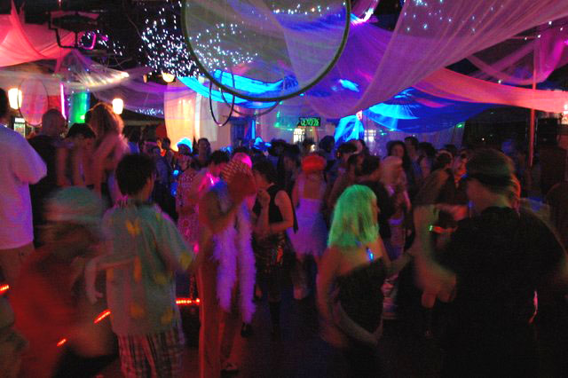 Prepare to be decontaminated upon landing! Learn our native customs in our undulating tourist office. Dance to Virgin tunes under our galactic night sky, trip out to the galactic visuals of VJ Marco, explore the local flora and fauna in the Silver Arbor, rest under the eaves of our vaulted temple, eat tasty native space snacks and ingest our specialty Electric Space Jello Shooters.