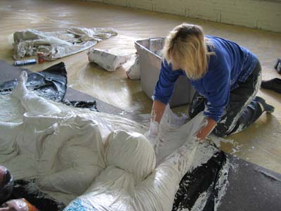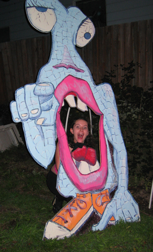 As much as possible we try to incorporate art projects into our fundraising events. For a Halloween party, we created 6 8 foot monsters cut out of plywood to allow people to stick their heads through the mouths and claws. We created five 8' dancing skeletons, and a 20' wall installation of ghosts made out of life sized plaster body casts. In collaboration with Area47