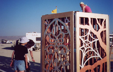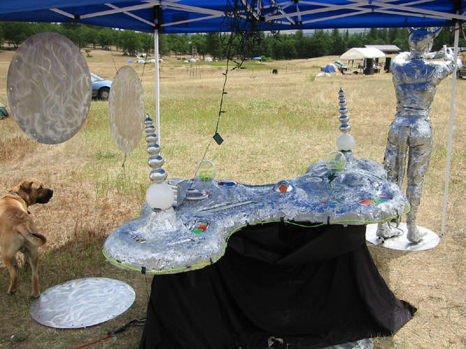 The Oracle was a 2003 Burning Man project. It was 2 x 8 booth made out of plexiglass and four mannequin heads. The booth lit up with the oracle button was pressed.