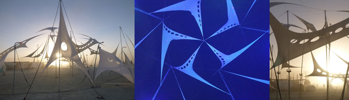 The goal was to simulate the experience of being inseminated by light with a galaxy-like vortex of points. It was 20 feet tall at its peak, with a 40 foot diameter.