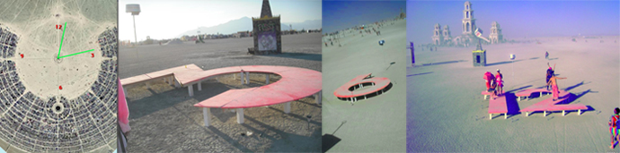 We created four giant 20 foot number benches for the worlds largest laser clock! The numbers were placed at 3, 6, 9, and 12 o'clock on the playa