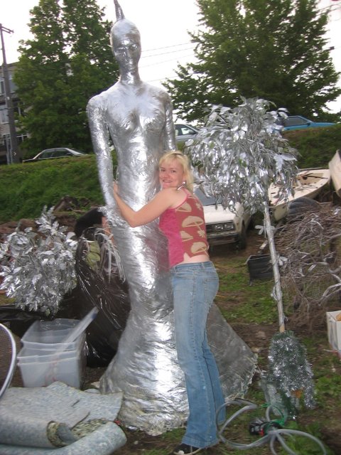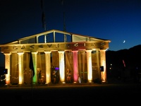 To commemorate 9/11, we built The Twin Towers on the esplanade -- a four story scaffolding structure with an aluminet shell that glowed in reds and oranges at night.